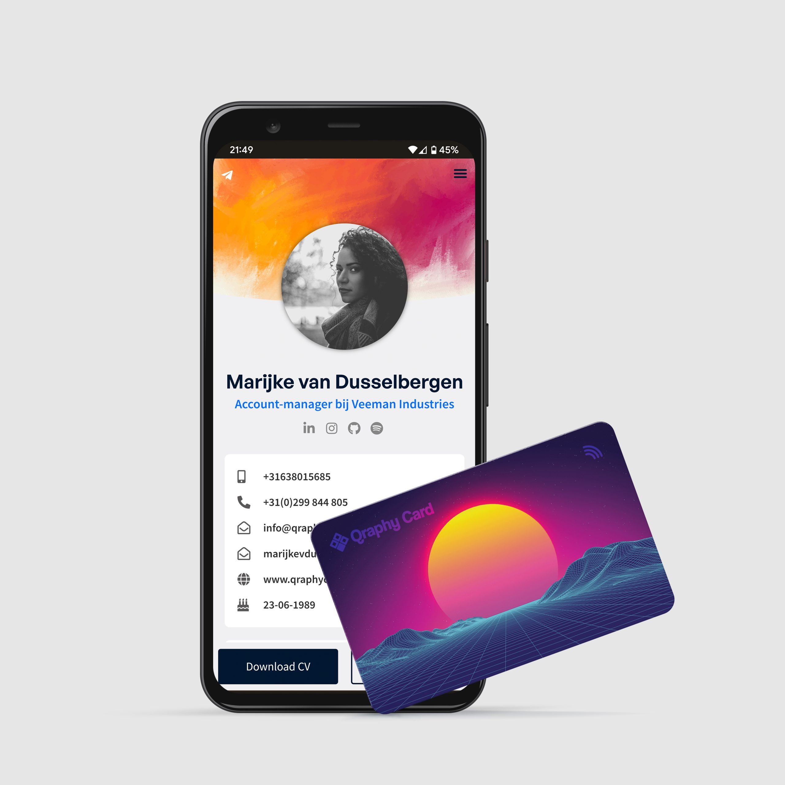 Of je nu een accountmanager, directeur, bandlid, kunstenaar of student bent, QraphyCard laat jou kiezen wat je doet met je visitekaart. Je kunt namelijk naast het delen van je contactinformatie, ook je portfolio, website of muziek direct aanbieden in de stijl die bij jou past!