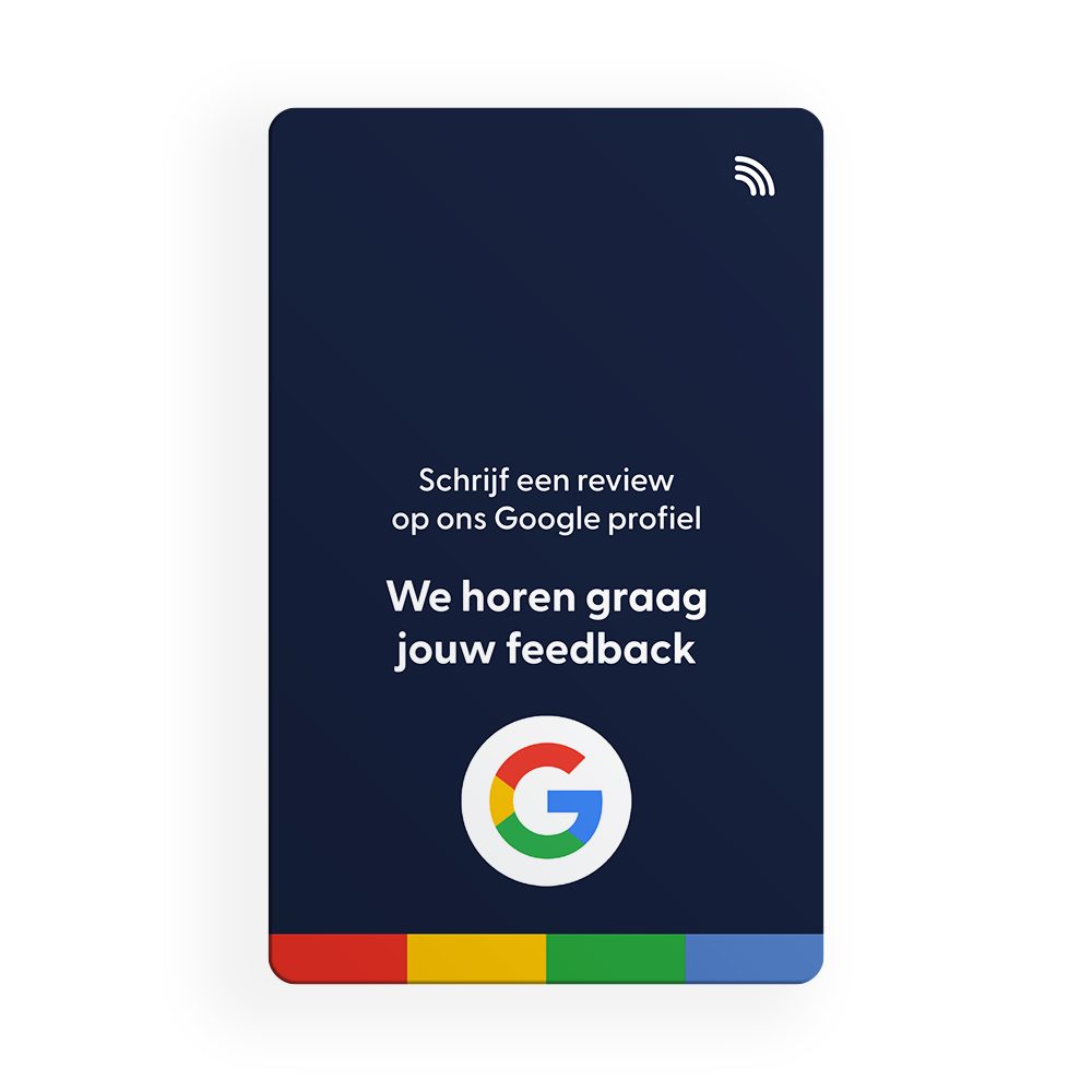 Met de speciale Google review kaarten van Qraphy wordt het verzamelen van beoordelingen op je bedrijfspagina op Google een fluitje van een cent. Door simpelweg de QR-code op de kaart te scannen, of met een simpele tap een connectie te maken met de NFC, belanden klanten direct op jouw bedrijfspagina op Google. Hier kunnen ze gemakkelijk en snel een beoordeling achterlaten, waardoor jouw bedrijf nog meer zichtbaarheid en geloofwaardigheid krijgt.