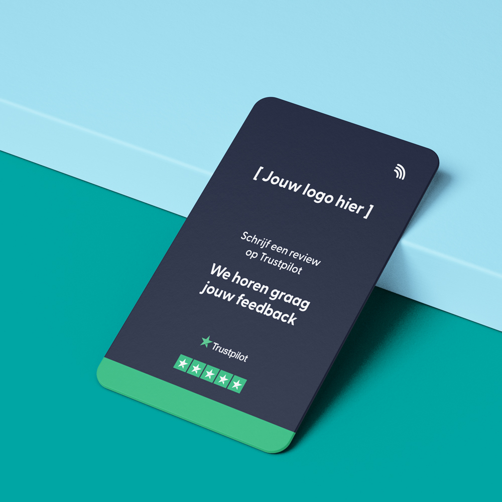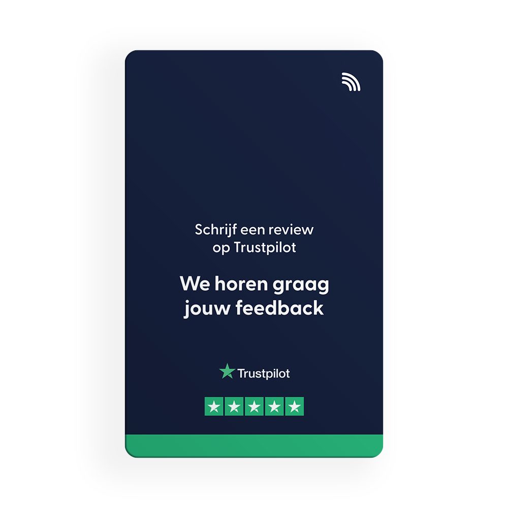 Hoe werkt het? Klanten hoeven alleen maar de QR-code op de kaart te scannen met hun smartphone, of met een simpele tap een connectie te maken via NFC. Binnen enkele seconden belanden ze rechtstreeks op jouw bedrijfspagina op Trustpilot. Hier kunnen ze gemakkelijk en snel een beoordeling achterlaten.